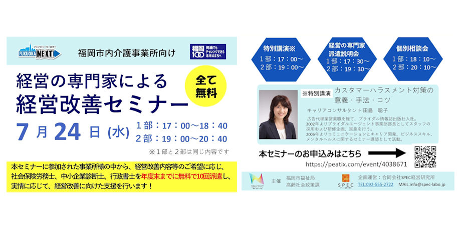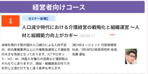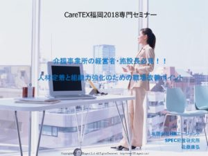 今年の7月4日(水)にマリンメッセ福岡で開催されたCareTEX福岡2018にて、SPEC経営研究所の佐藤が担当したセミナーにもご参加いただきました。