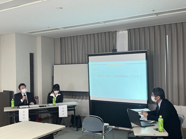 前半の座談会には医療法人柏愛会の桑田伸枝、一般社団法人クオリティライフの井上雅之が登壇し、司会を務める弊社の主任コンサルタント佐藤康弘がICT導入に至るまでの経緯、導入に対して不安だったこと、導入をスムーズに行うために工夫した点などのお話を伺いました。